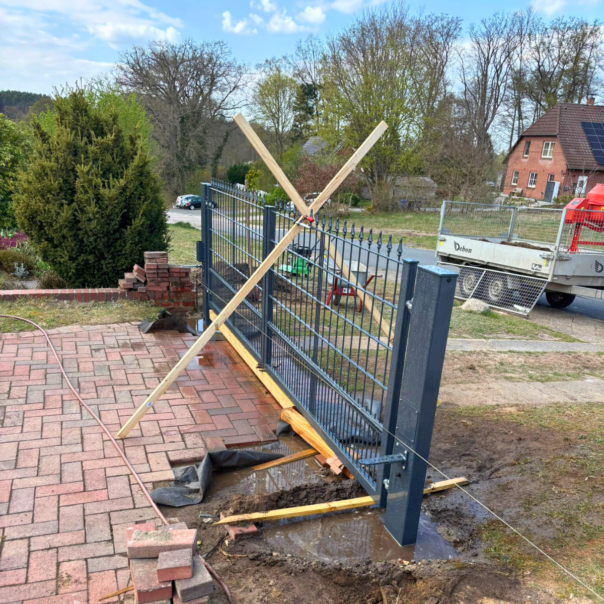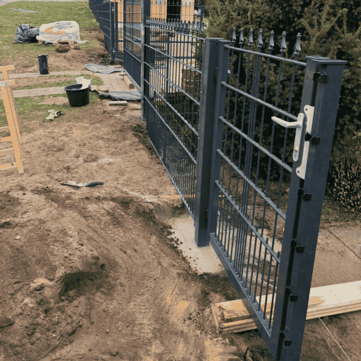 Zaun und Gartentor im Aufbau